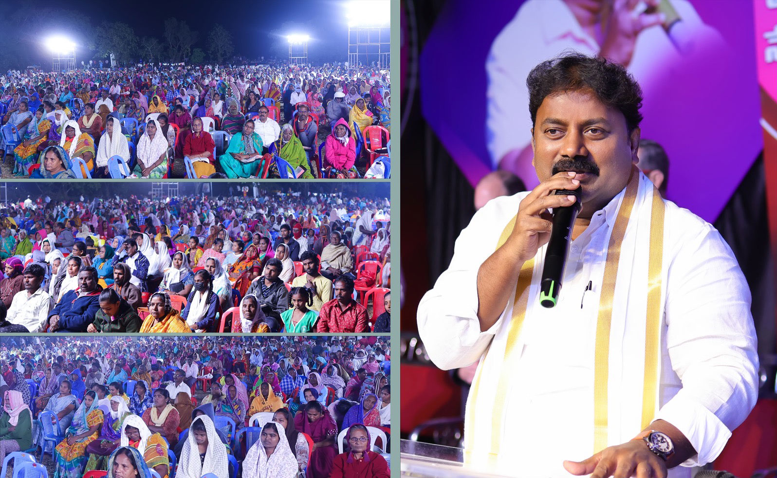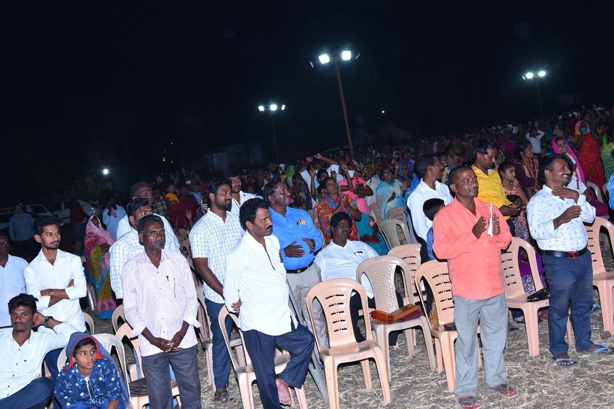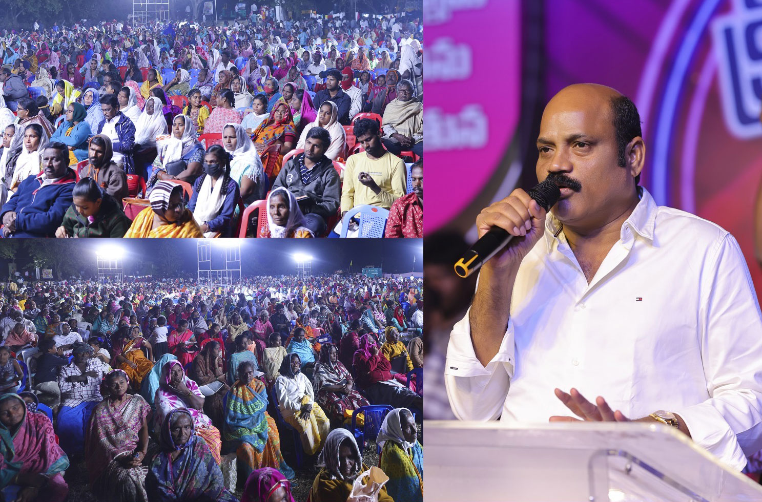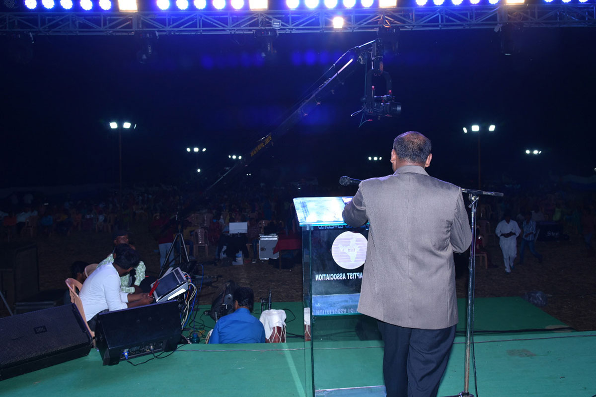 Dr.Pandu Maddala is preaching the word of God in an evangelistic crusade